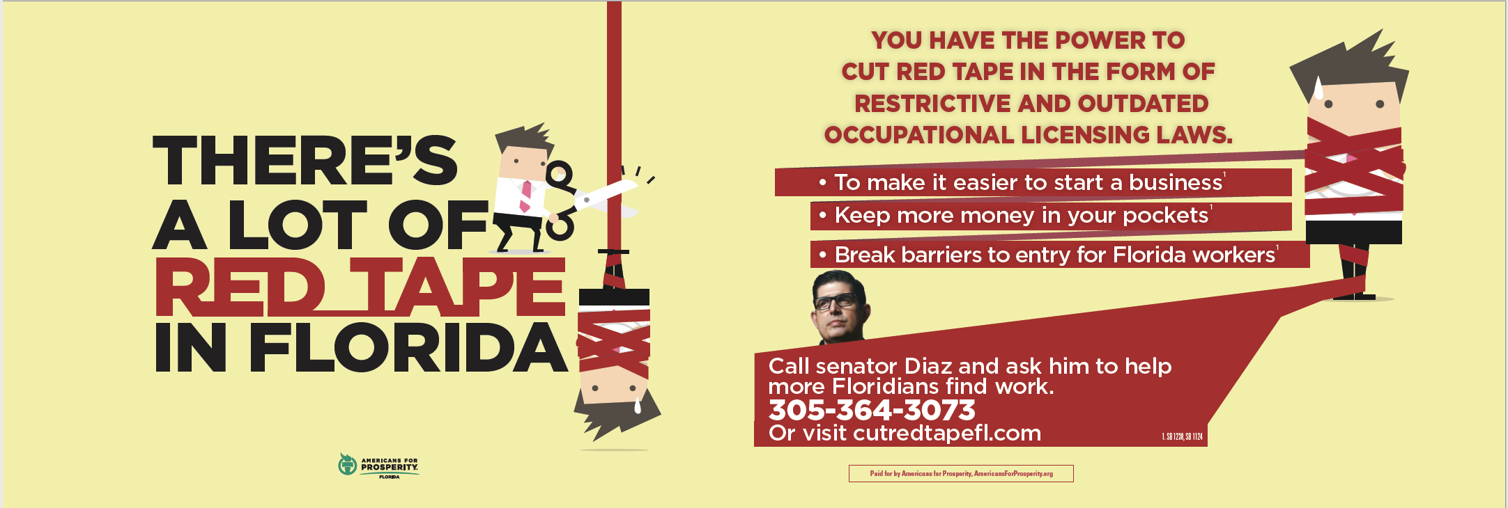 Tallahassee, FL – Americans for Prosperity-Florida (AFP-FL) today launched a comprehensive campaign to boost efforts to reform Florida’s restrictive and outdated occupational licensing laws. The campaign will include targeted direct-mail, digital, and the group’s signature grassroots efforts to mobilize Floridians to engage their local lawmakers during the state’s legislative session.