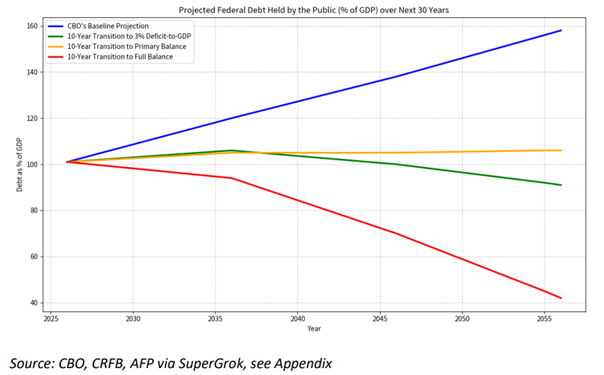 Good concept: A 3% deficit-to-GDP target is a good general goal. It is the most reachable round number to help policymakers stabilize and reduce the debt burden. Today’s high and rising debt puts pressure on inflation and interest rates, undermines opportunity and prosperity, and threatens a debt crisis.