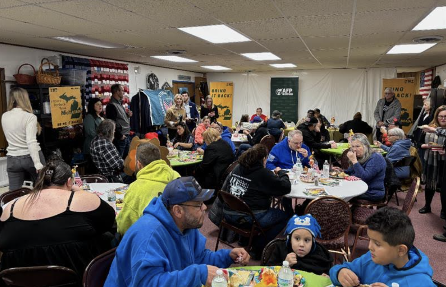 AFP-MI and CVA volunteers along with State Reps. Jamie Thompson and Rylee Linting distributed Thanksgiving meal packages to veterans and their families. The event also featured an informal community conversation between lawmakers, veterans, and local residents about improving veteran support and removing barriers facing military families.