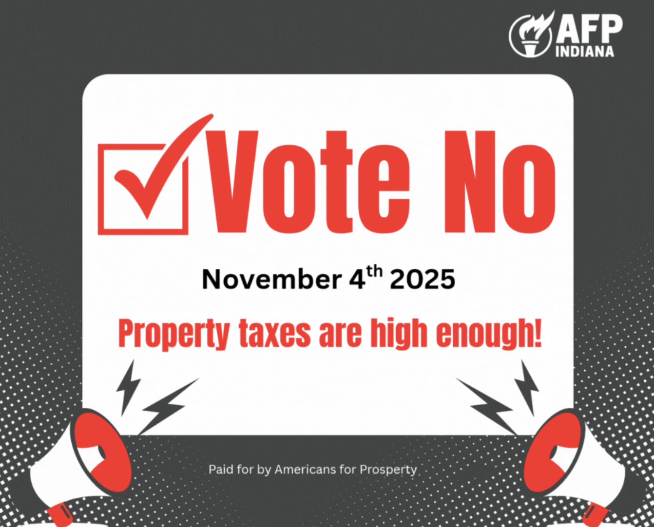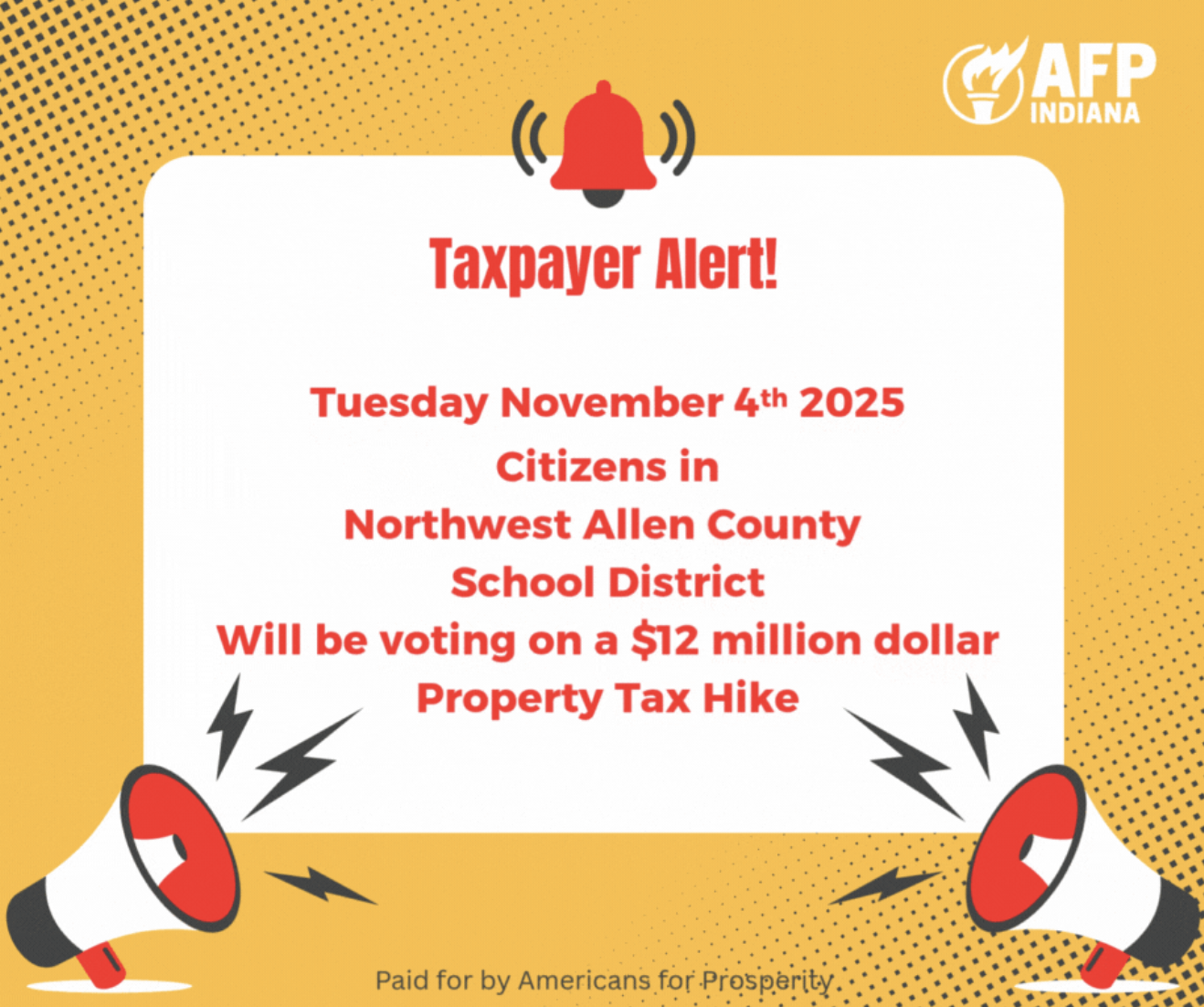 Fort Wayne, IN – Americans for Prosperity–Indiana (AFP-IN) announced today the launch of a new digital advertising campaign that will run through Election Day, highlighting the real impact of the Northwest Allen County Schools $12 million operating referendum and urging voters to say no to higher property taxes.