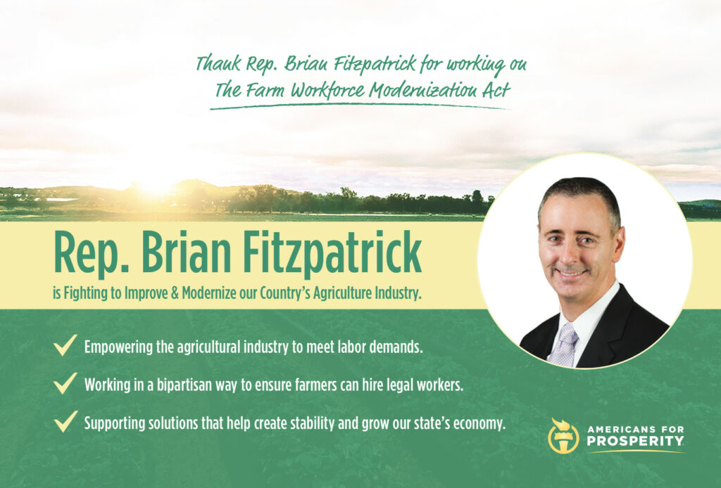 Arlington, Va. – Today, Americans for Prosperity (AFP) announced the launch of a direct mail and digital campaign thanking Republican and Democratic lawmakers for their bipartisan efforts aimed at improving our country’s agricultural industry through The Farm Workforce Modernization Act 2019.