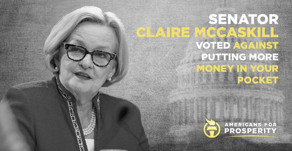 “When given the chance to provide tax relief to hard-working Missourians and small business, she resoundingly voted ‘No,’ claiming there were too many ‘goodies’ in the bill,” said AFP-MO State Director Jeremy Cady. “However, when given the opportunity to vote for a massive spending bill riddled with special interest goodies for Hollywood, race horse owners, Caribbean rum distillers, ‘green’ energy companies, and others, she voted for it.”